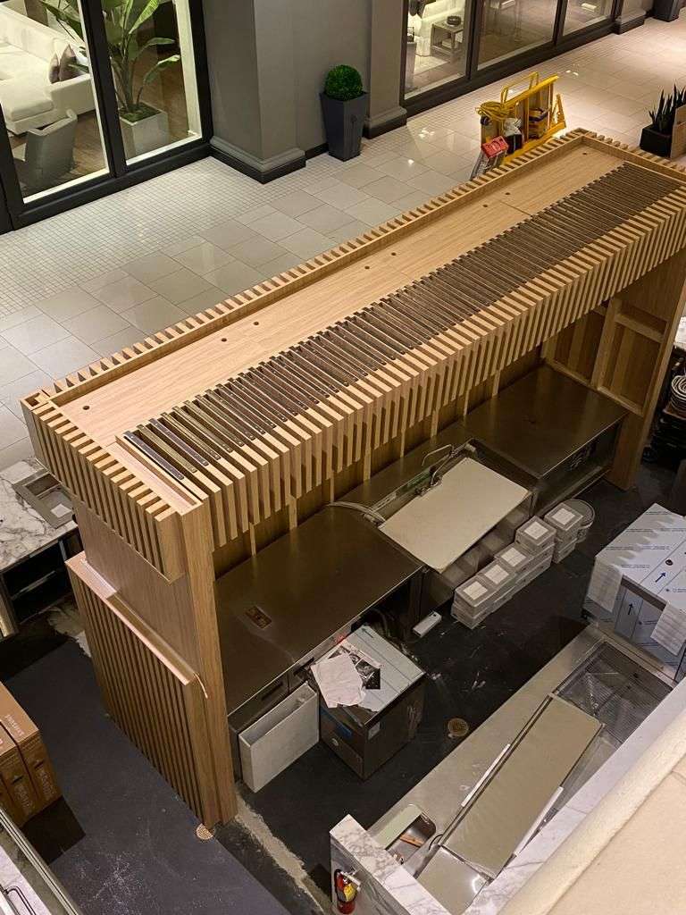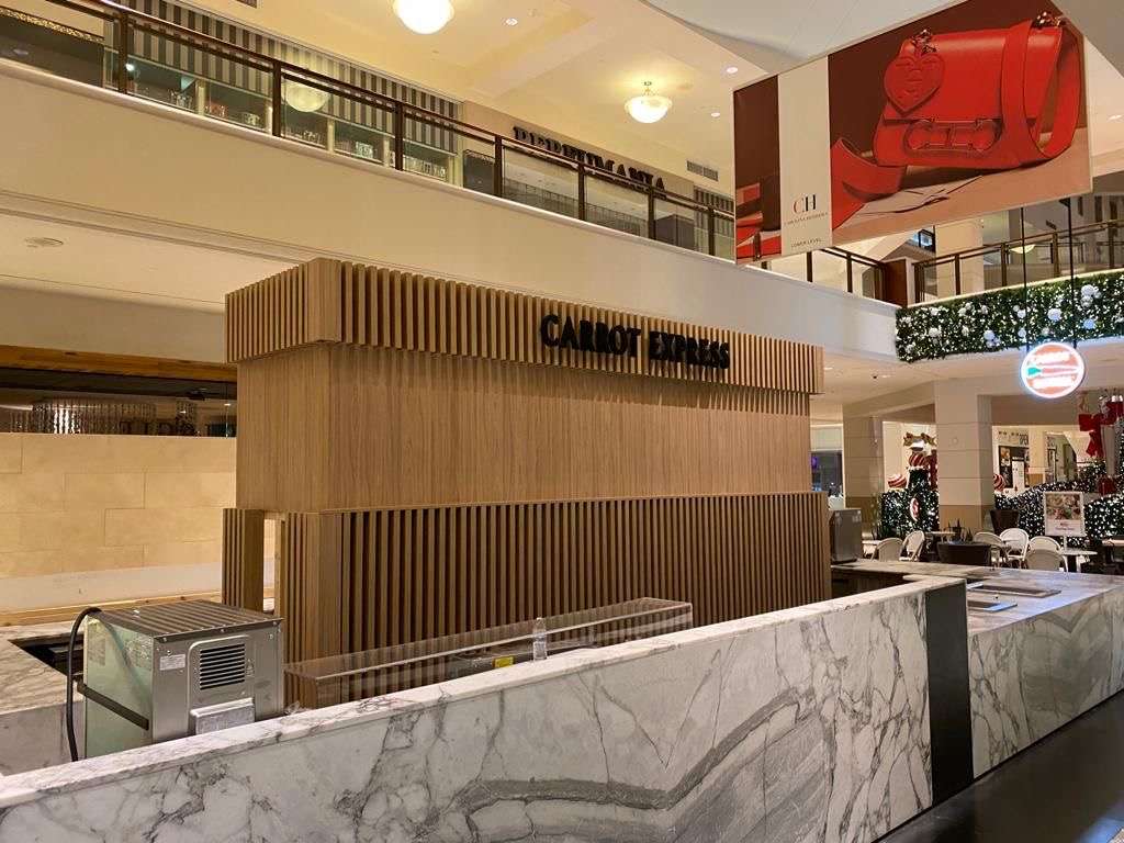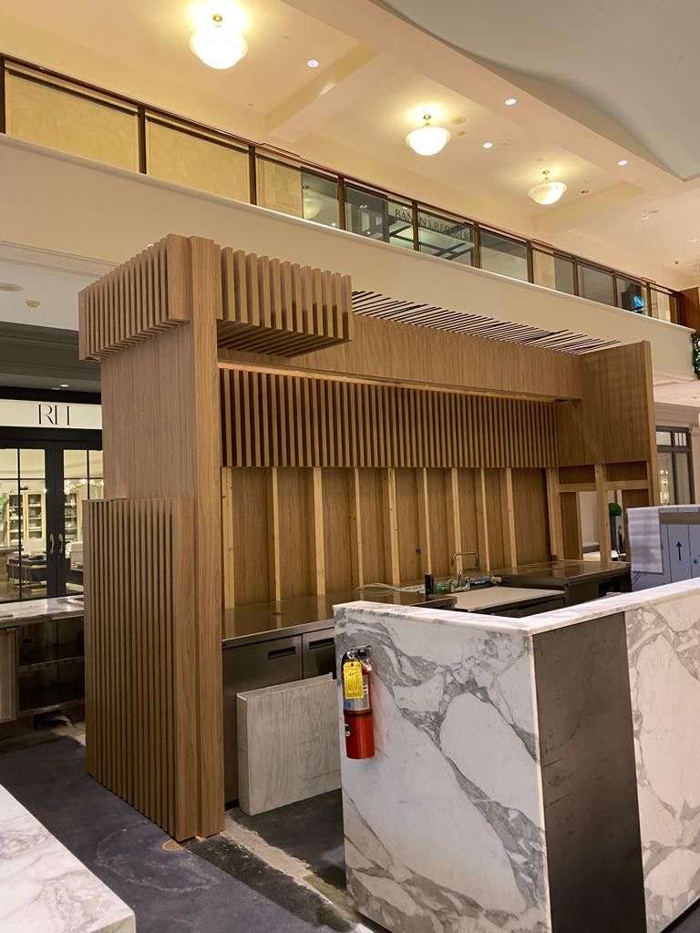 Complete store pop up for a healthy resto in main mall of Miami. Complete custome wood work and operational system.