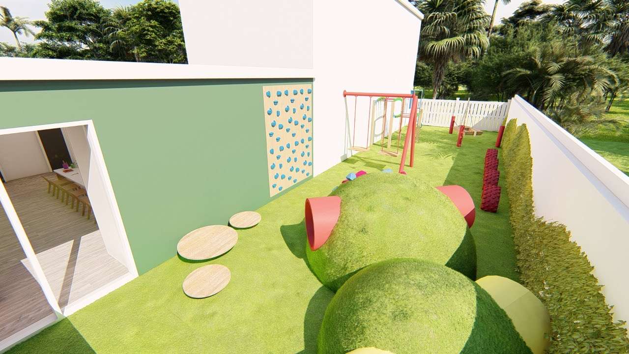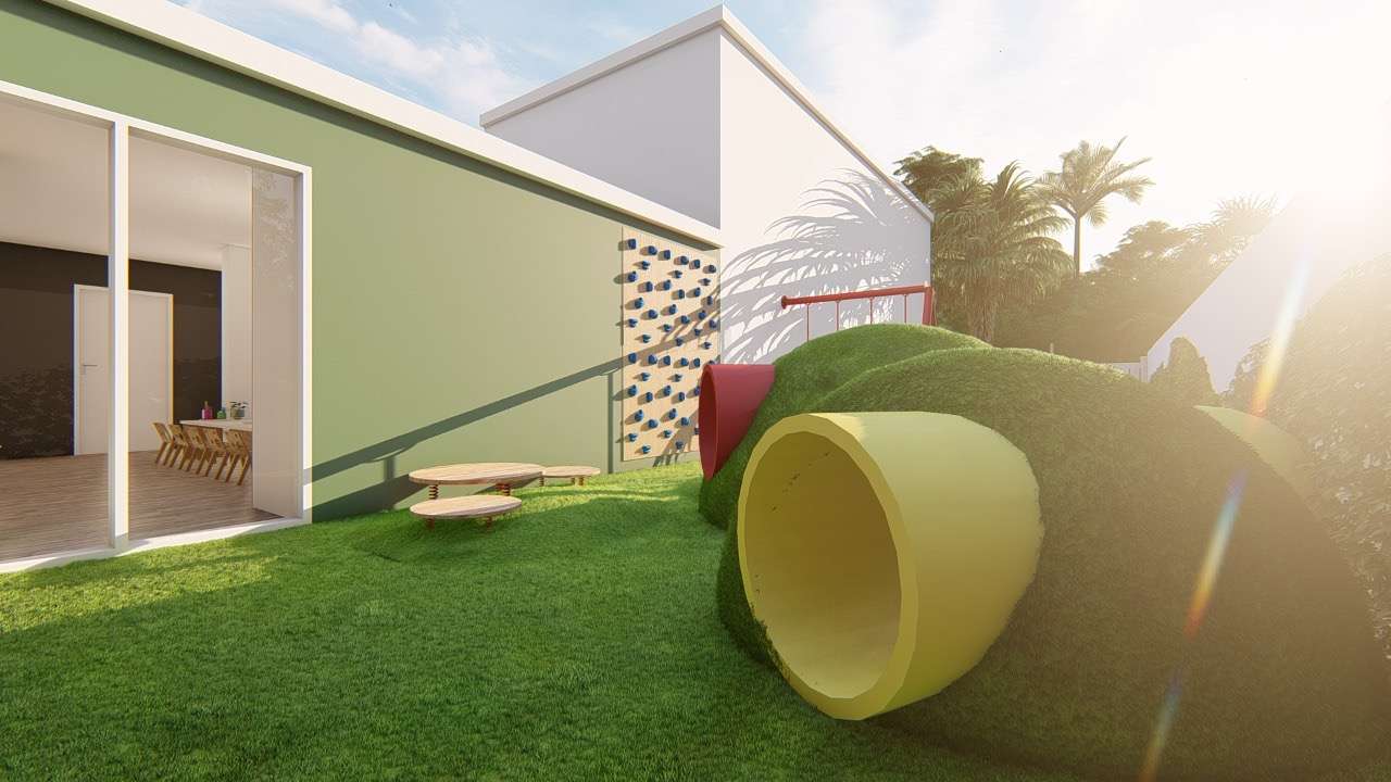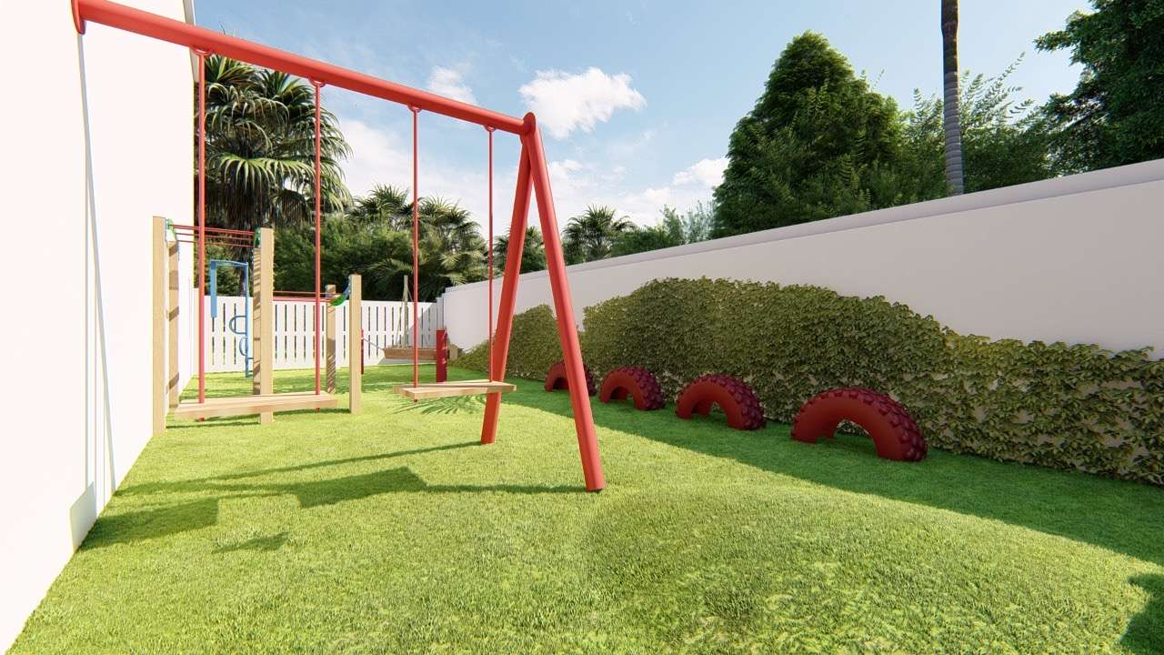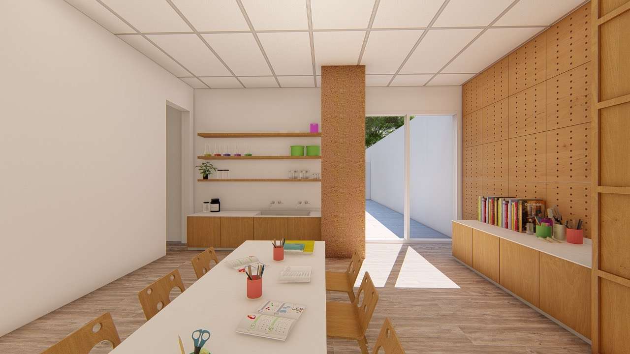 Project of play house and workshop for little kids. Reform of an old building with colorful and modern pieces. Recreation inside and outside.