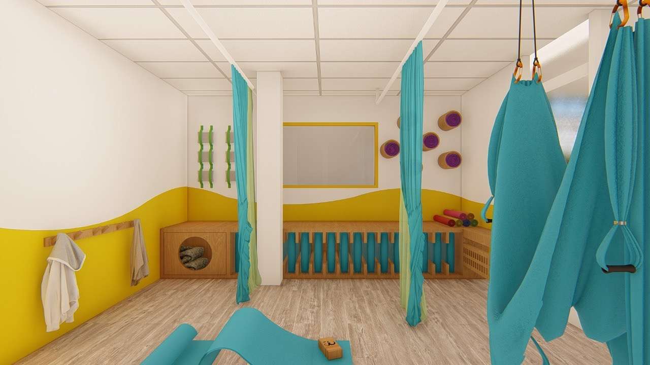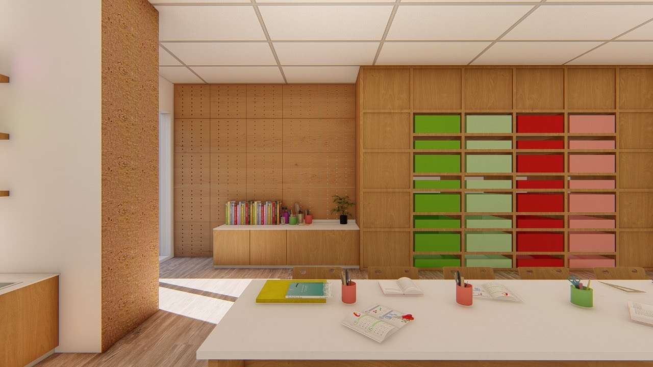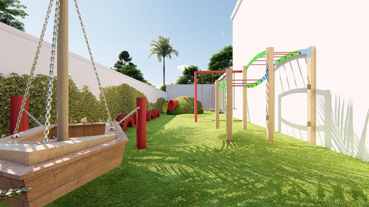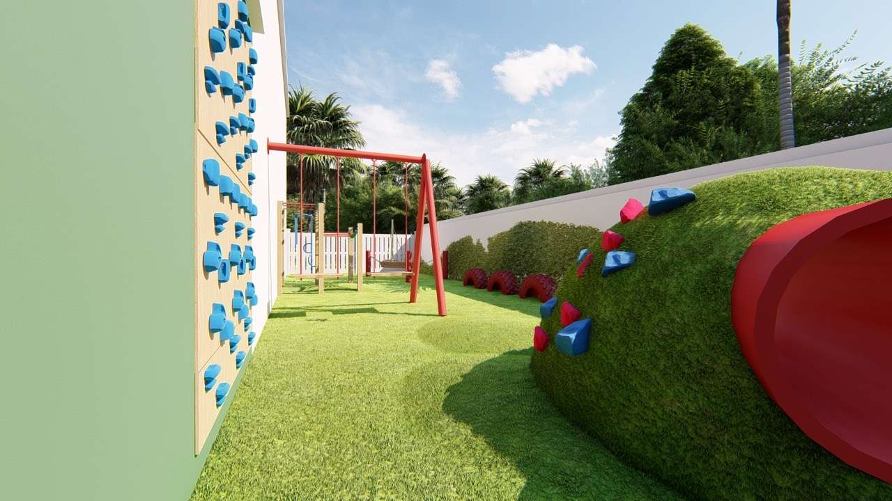 Project of play house and workshop for little kids. Reform of an old building with colorful and modern pieces. Recreation inside and outside.